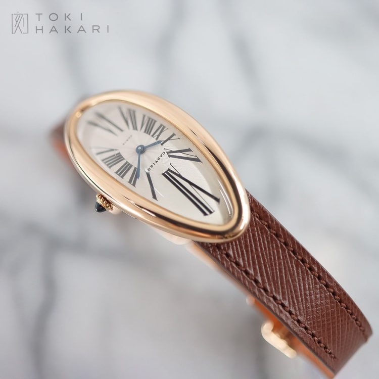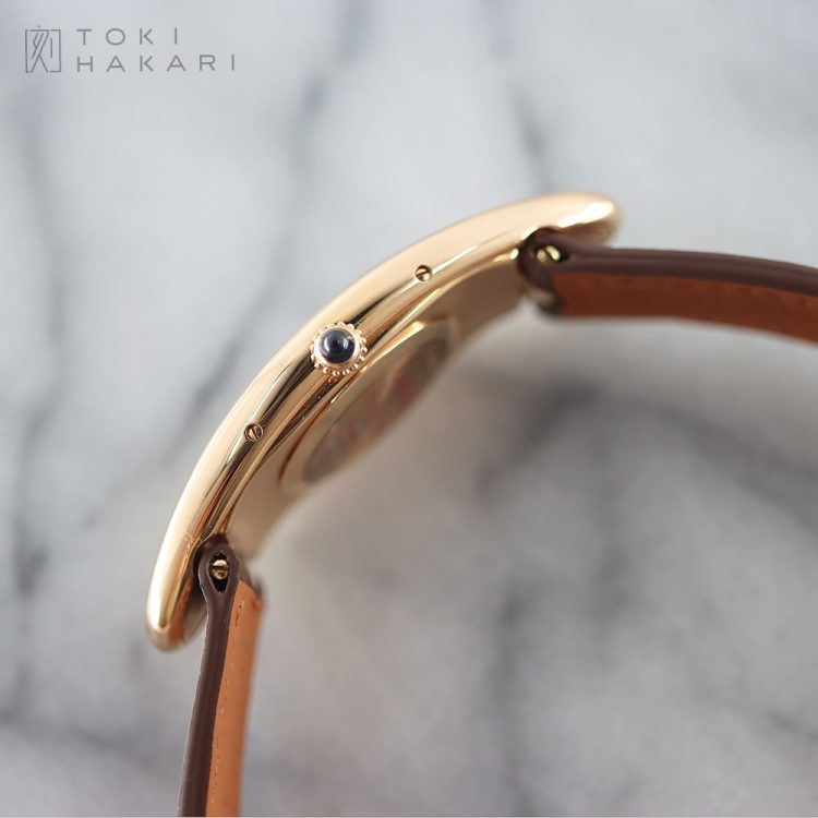 「クラッシュ」や「タンク・サントレ」といったモデルに通ずる大胆かつ芸術性の高いケースフォルムが、腕元に比類の無い存在感を放ちます。