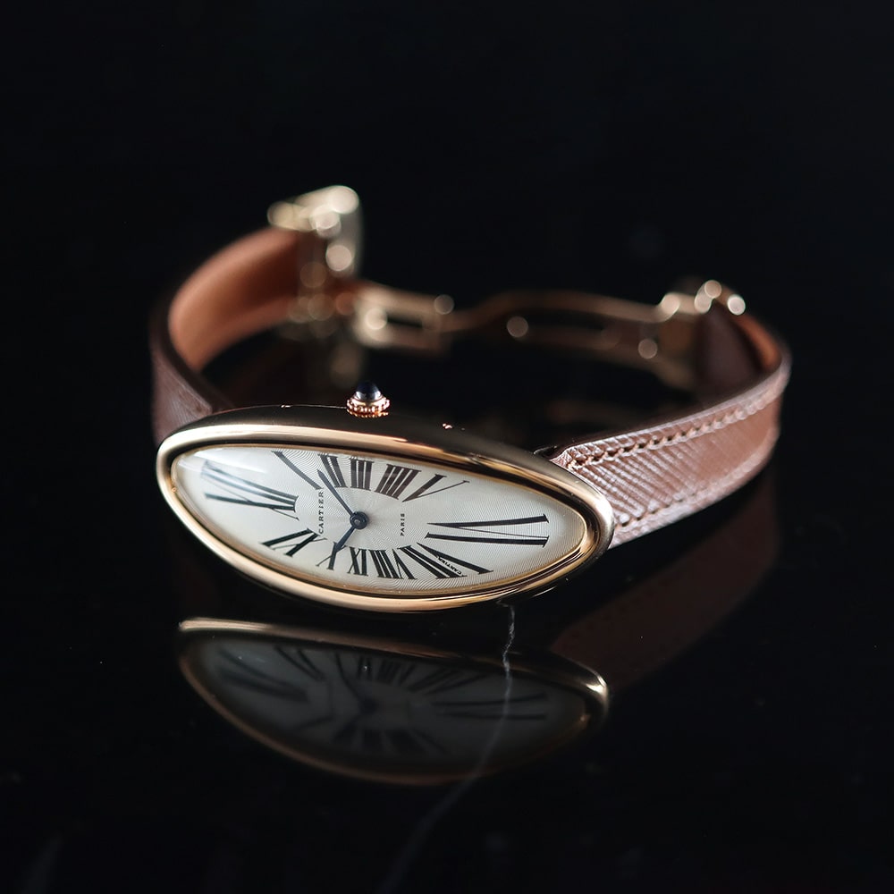 華やかなピンクゴールドをケース素材に採用したベニュワール・アロンジェのXLサイズモデル「W1528651」は、1991年に登場したイエローゴールド製の400本限定モデル「W1507451」の発売後、100本のみが製作された希少モデルとなっております。