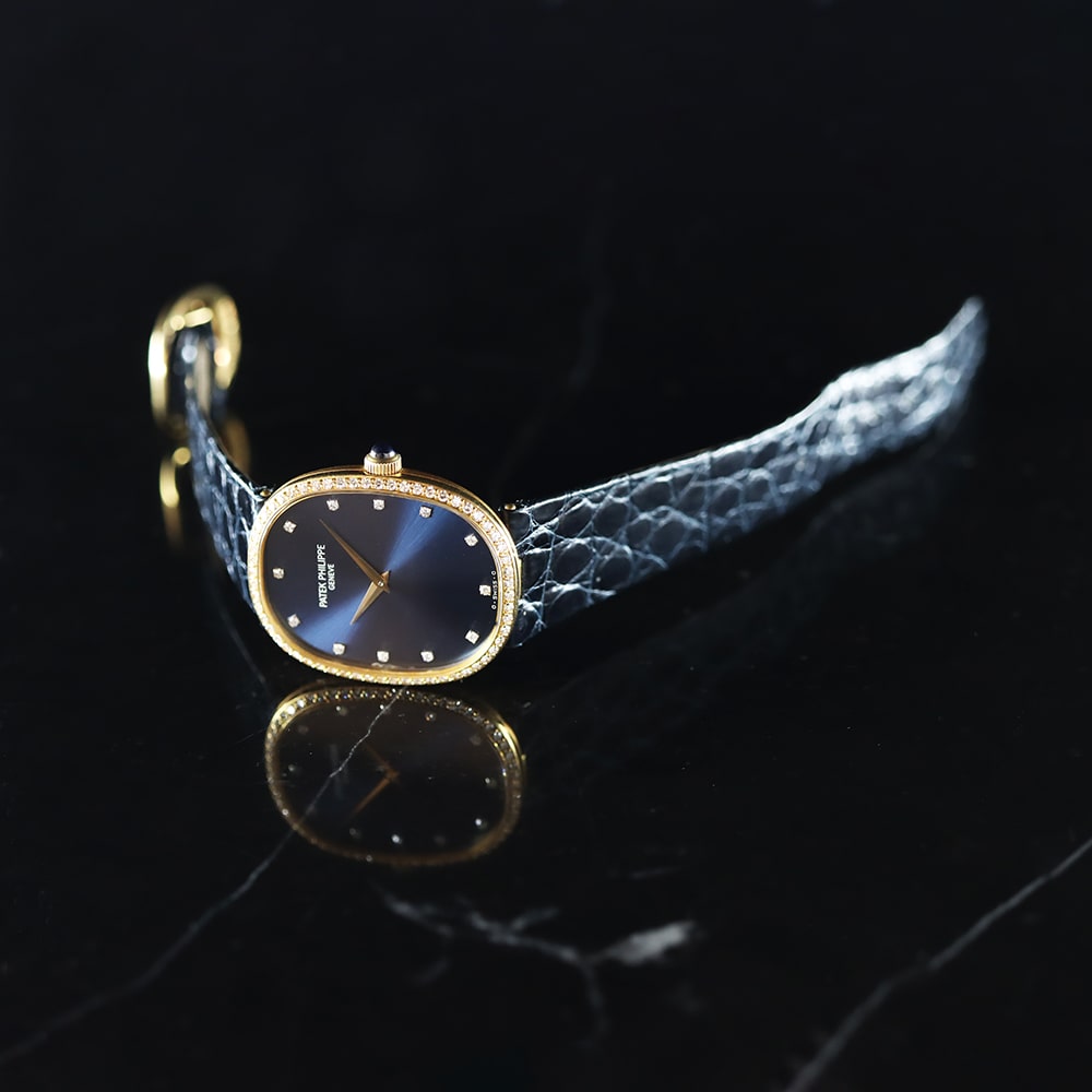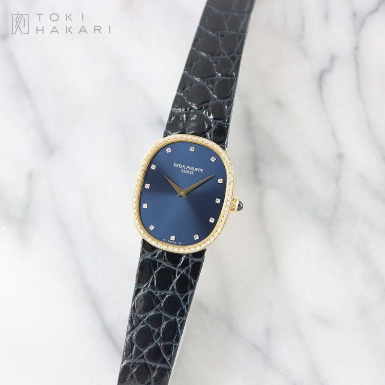 1968年に誕生した「ゴールデン・エリプス」は、パテック・フィリップのコレクションの中でカラトラバに次いで、2番目に長い歴史を持つ重要なコレクションであり、円と長方形を融合させた独特なオーバル型ケースは、黄金分割(1:1.6181)に基づいてデザインされています。