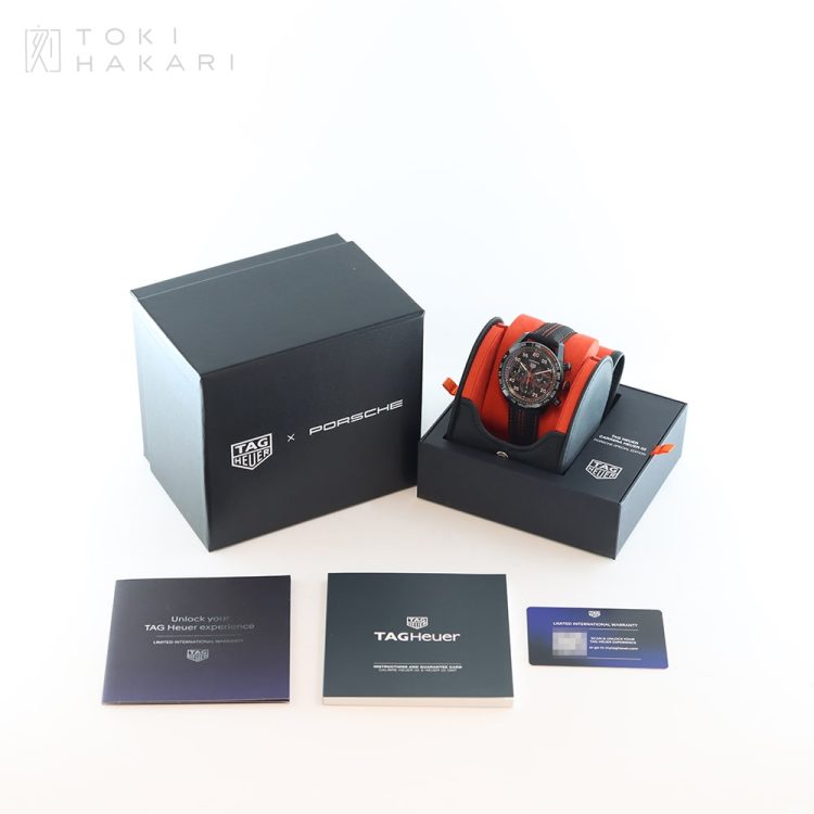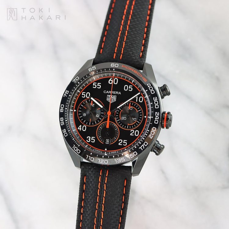 タグ・ホイヤーとポルシェによるコラボレーションモデルの第6段となる、カレラ クロノグラフ×ポルシェ オレンジレーシング「CBN2A1M.FC6526」の入荷です。
