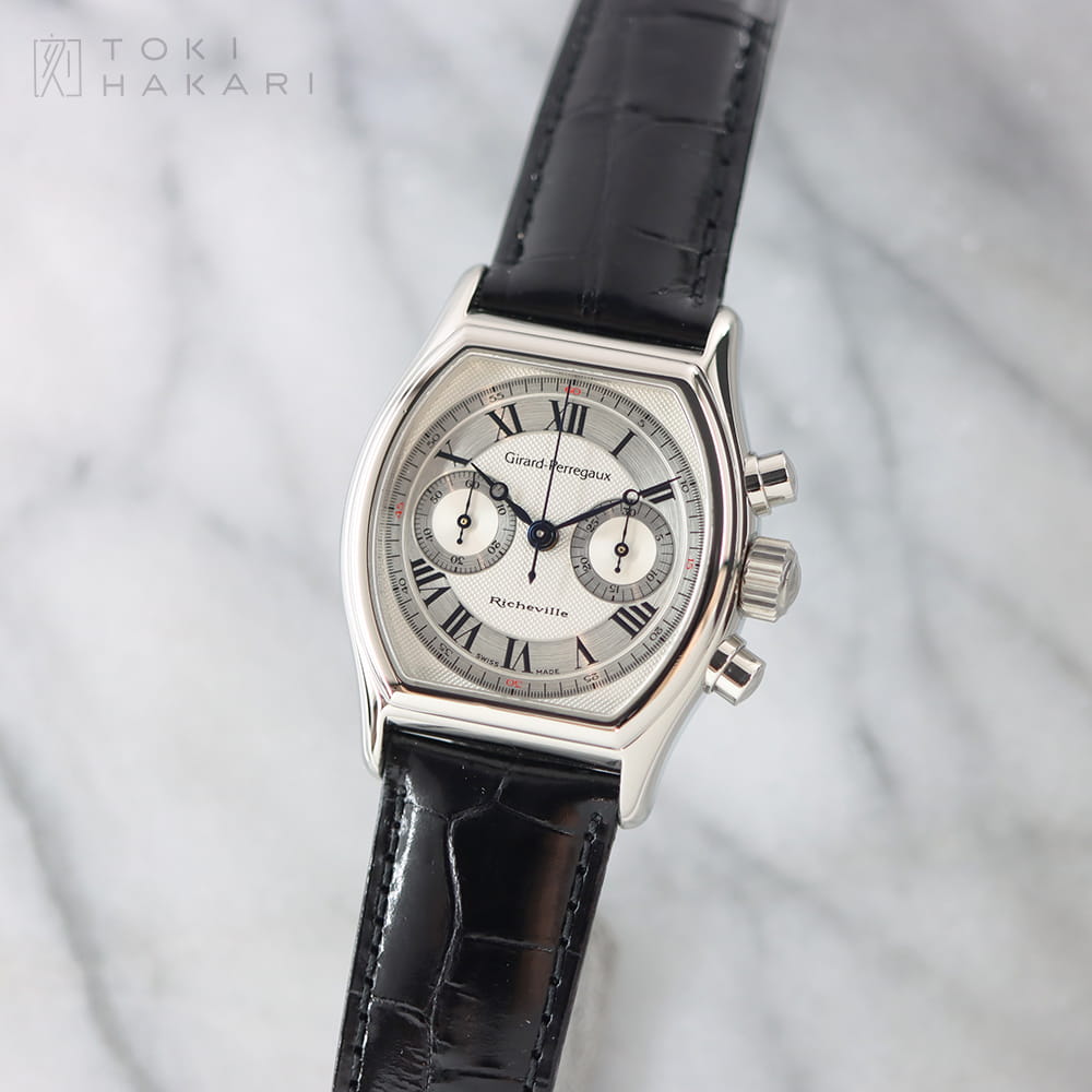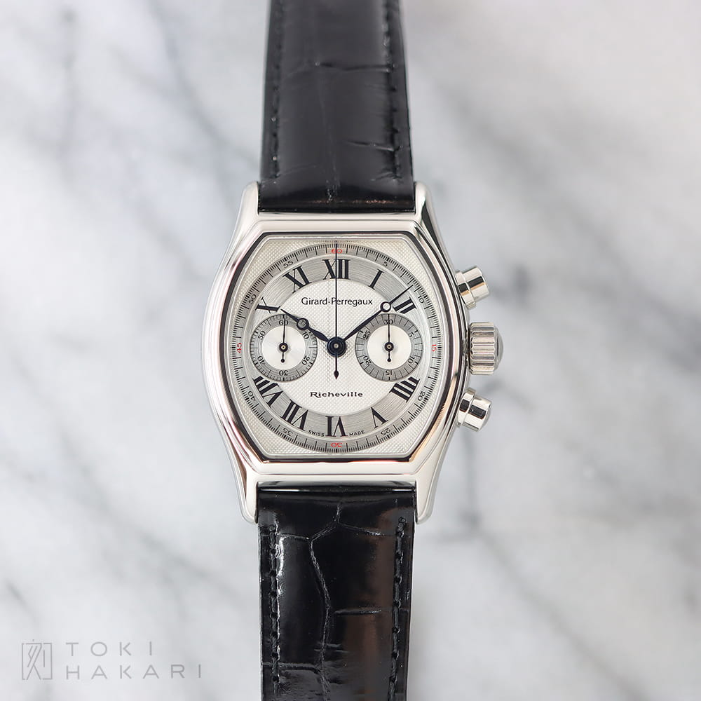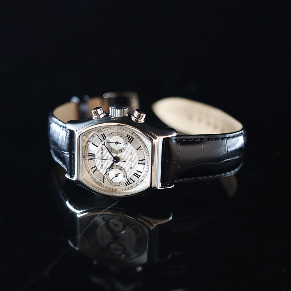 1992年に発表されたリシュビル・クロノグラフは、エレガントなトノーケースにレマニア製の2カウンタークロノグラフを搭載したモデルです。